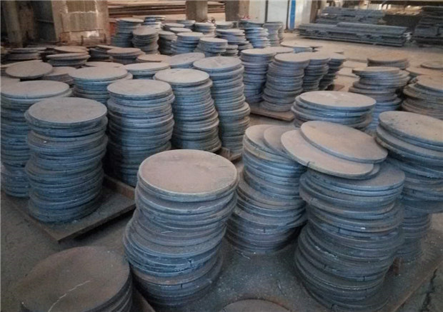 此物料為法蘭料芯,材質(zhì)為萊鋼正品板Q235B材質(zhì)(含質(zhì)保書),厚度17.2mm,正差板,邊緣處有30mm的貫穿切口,可沖壓最大直徑370mm的盲板,報價承兌含稅價3350元/噸(不含運費)。車間可提供φ330mm的盲板沖壓。